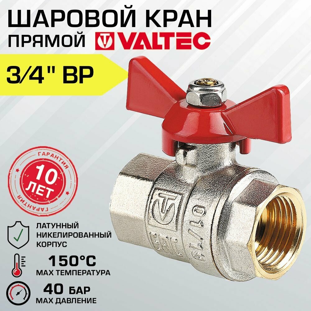 Кран шаровый 3/4"ВВ VALTEC BASE красная бабочка VT.217.N.05
