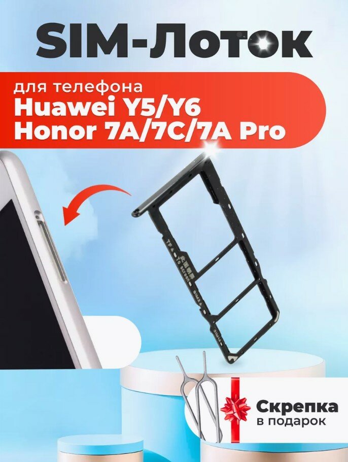 Купить Держатель сим карты лоток Контейнер SIM для Huawei Honor 7A Pro/7A/7C/Y5 2018 черный / скрепка в подарок