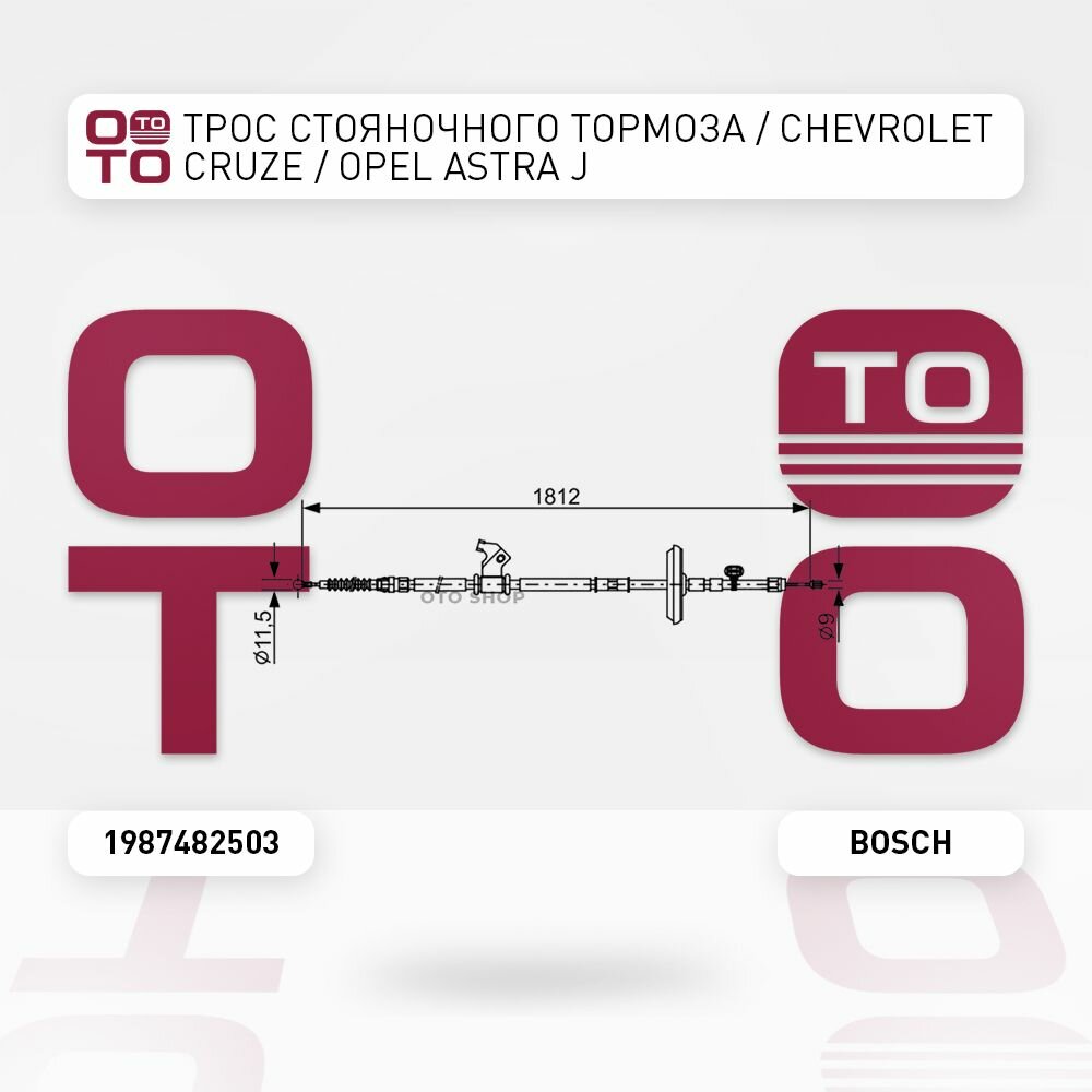 1 987 482 503_Трос Ручника Зад. Лев.!L=1810 Chevrolet Cruze 1.6-1.8/1.7Cdi/2.0Cdi 09>_Ак Bosch арт. 1 987 482 503