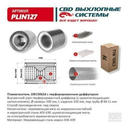 CBD PLIN127 Пламегаситель 10015062d с перфорированным диффузором, из Нерж.стали. CBD. PLIN127