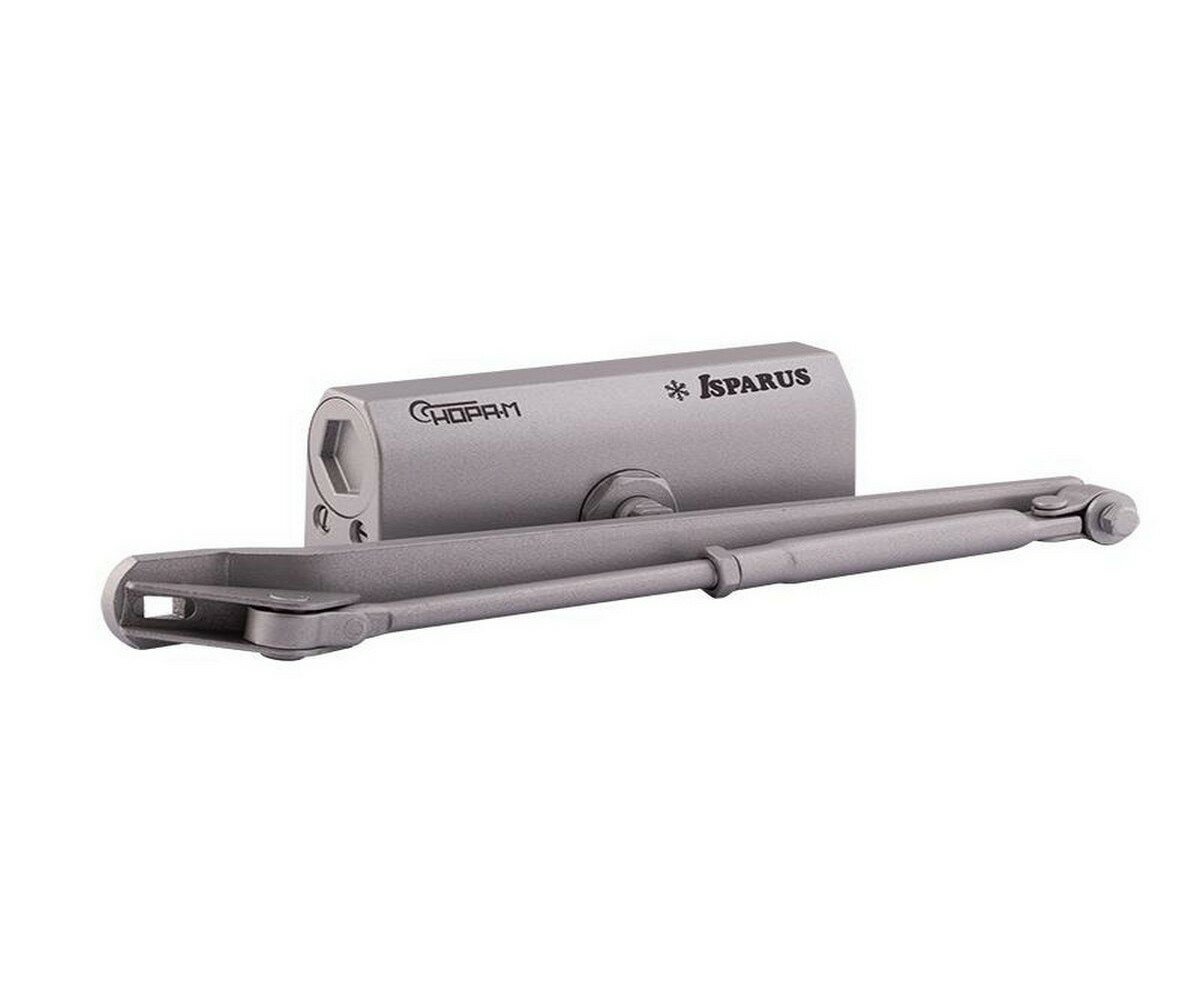 Дверной доводчик ISPARUS 440 морозостойкий, для дверей от 80 до 140 кг, серебро 17202