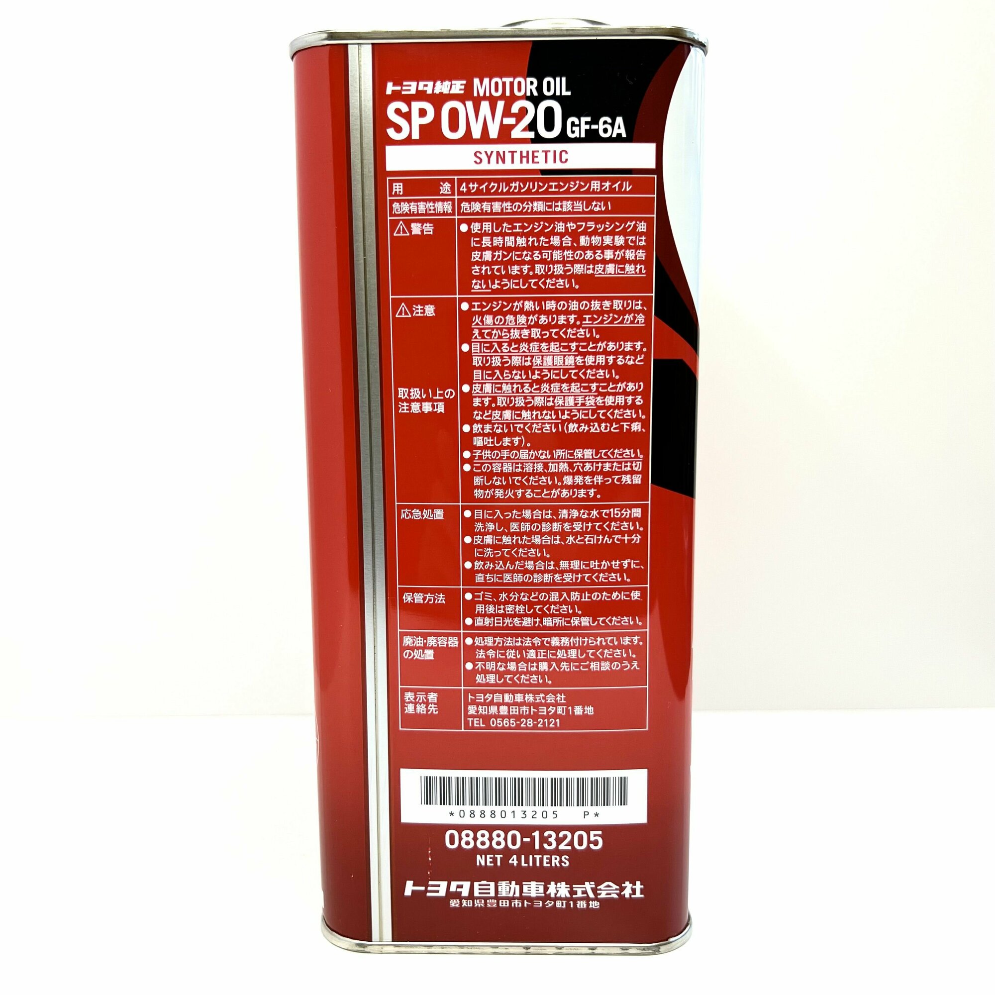 Купить TOYOTA Масло Моторное Toyota, Oil Sp 0W-20 Gf-6A, 4L 08880-13205
