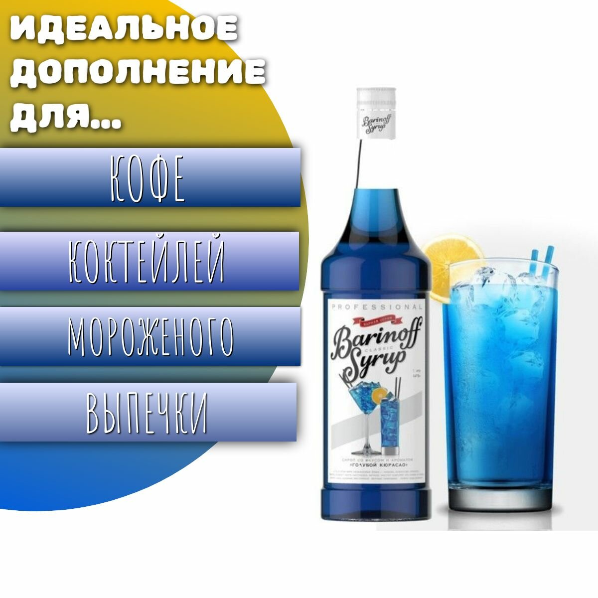 Сироп Barinoff Голубой кюрасао (для кофе, коктейлей, десертов, лимонада и мороженого), 1л