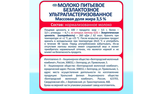 | Стандарты производства | ТУ 10.51.11-070-00425662-2019 |