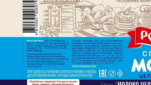 | Производитель | Рогачевский молочноконсервный комбинат |