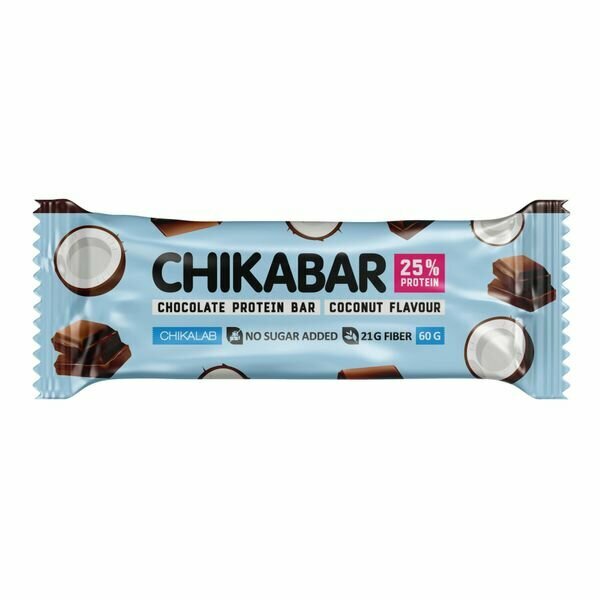 Купить Батончик Chikalab Chikabar протеиновый кокосовый с шоколадной начинкой 60 г