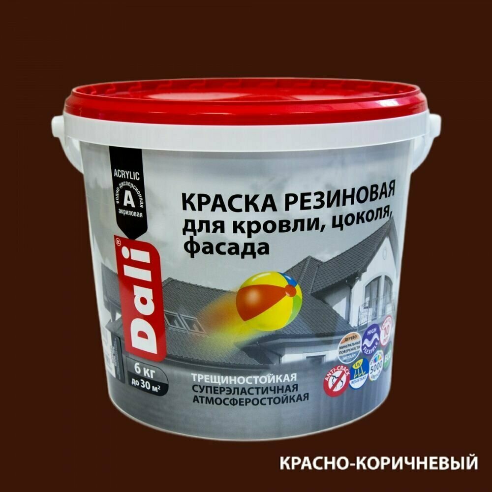 Купить Краска резиновая эластичная DALI/Дали, акриловая, для кровли, фасадов, цоколя, водостойкая, красно-коричневый, 6 кг