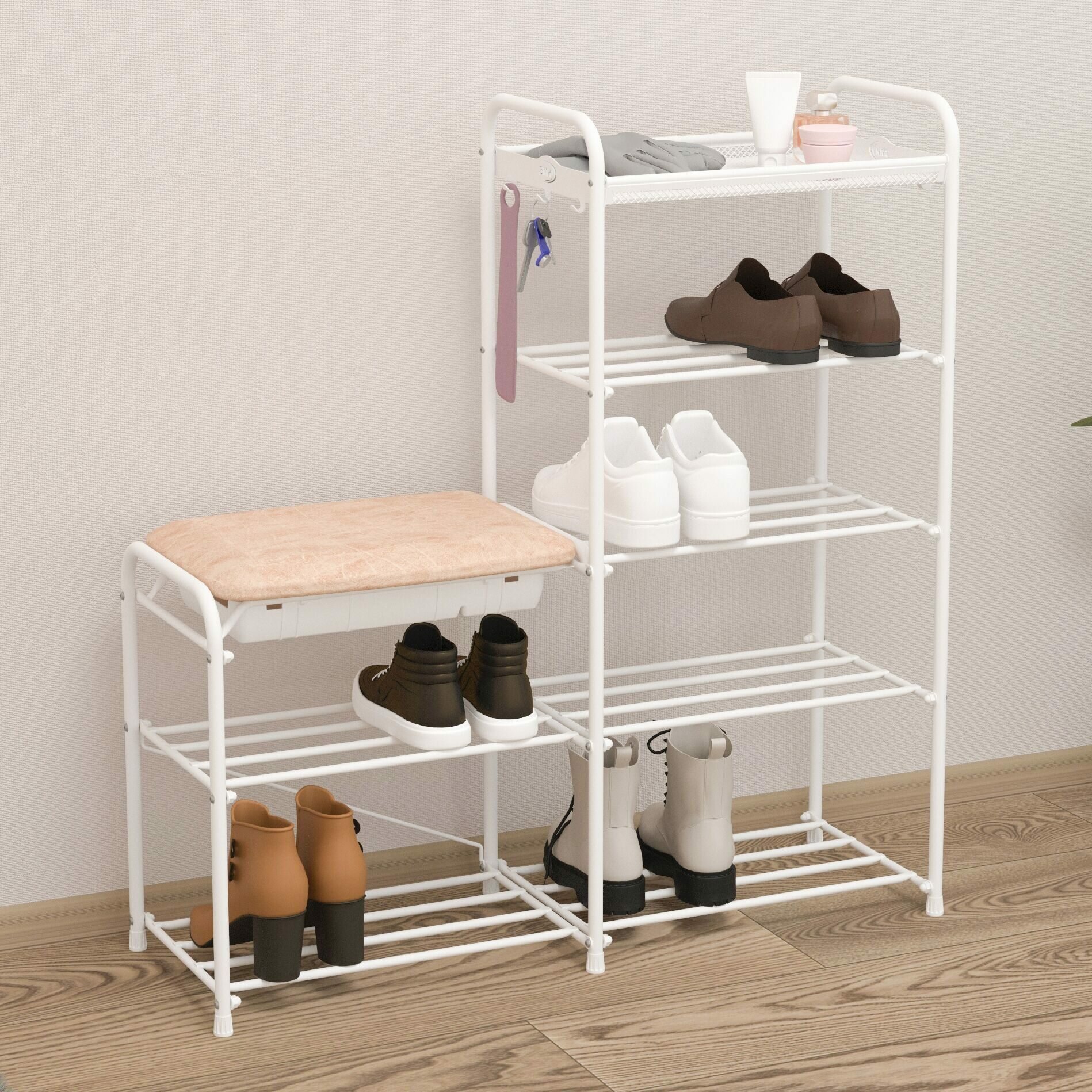 Подставка для обуви с сиденьем и ящиком, 5 ярусов, 88.4x29.8x94.5 см, цвет медный антик