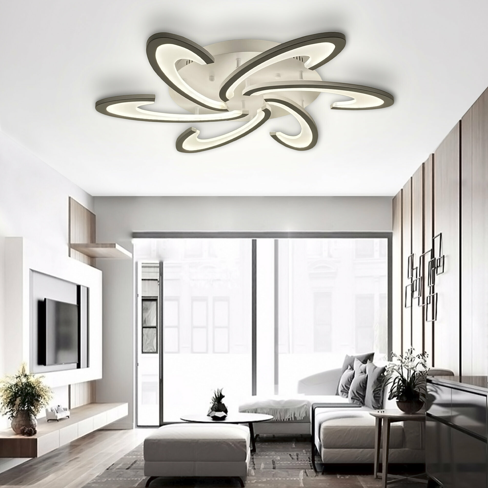 Люстра с пультом светодиодная потолочная 176W, 8 ламп, цветок, большая, белая, LEDCITY