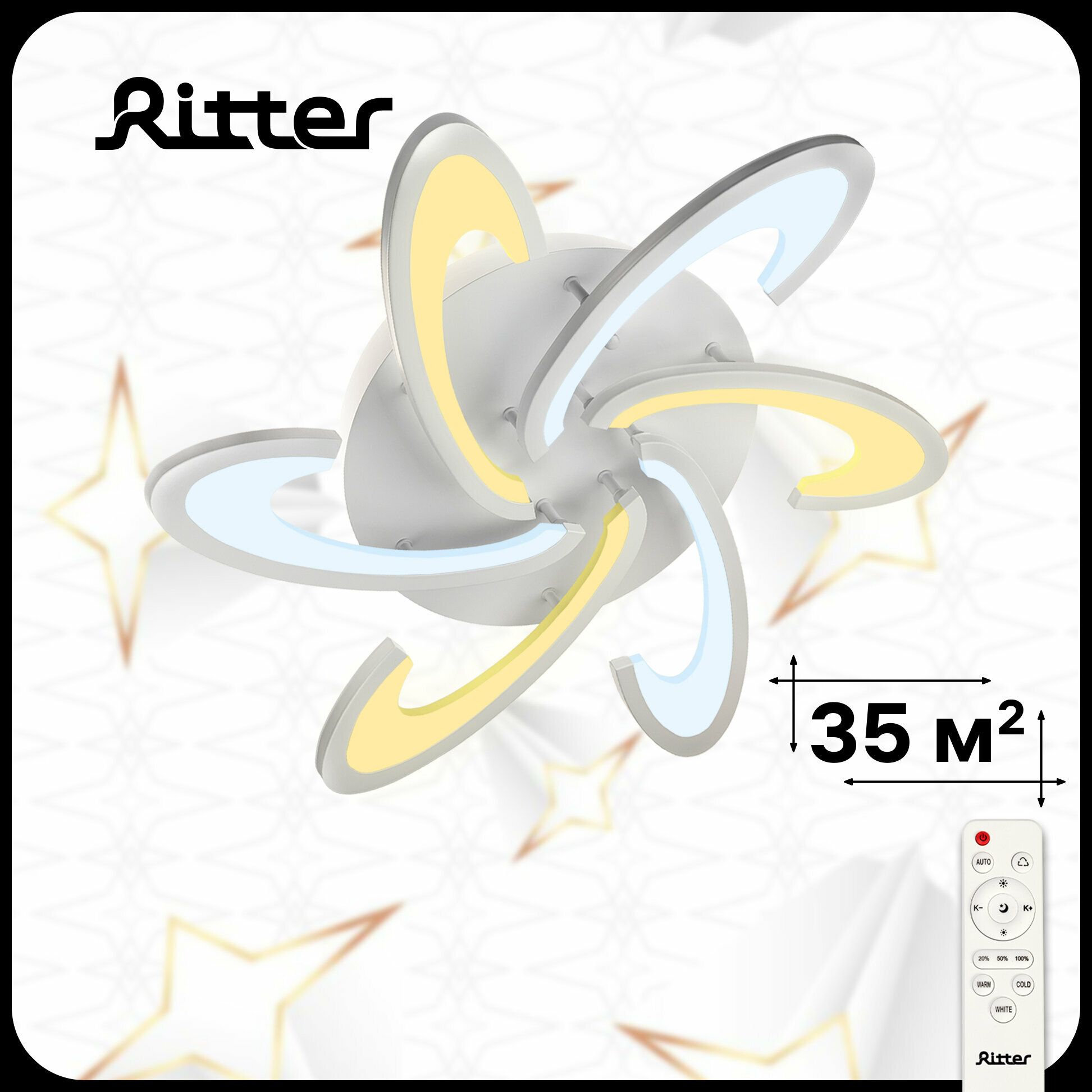 Люстра потолочная светодиодная диммируемая, Ritter MALTA 52019 1, с д/у, 108 Вт, 36 м², регулируемый белый свет, цвет белый