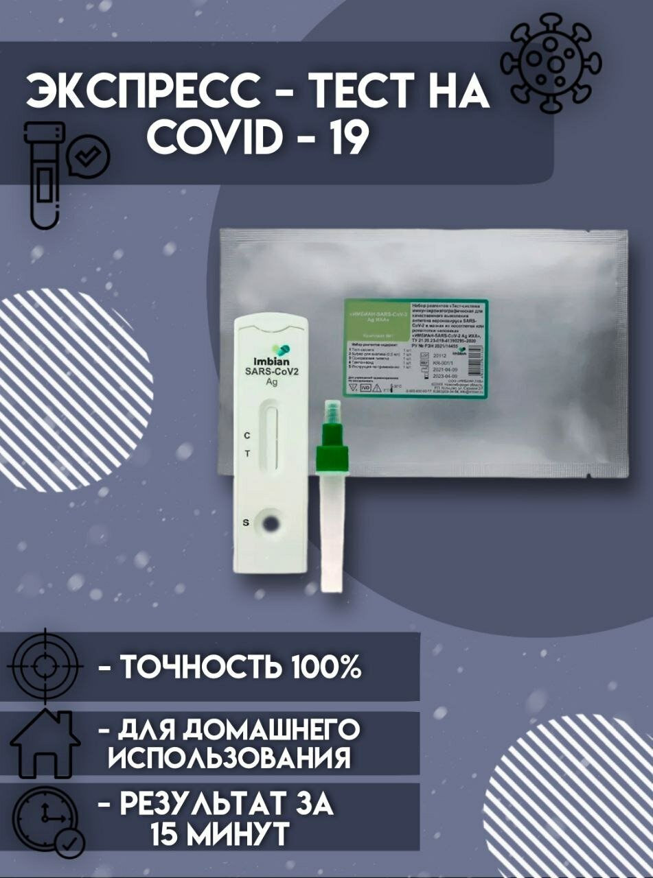 Экспресс-тест на выявление антигена коронавируса Covid-19 в мазке из носоглотки Имбиан-SARS-CoV-2 Ag ИХА (тест на ковид), Комплект №1