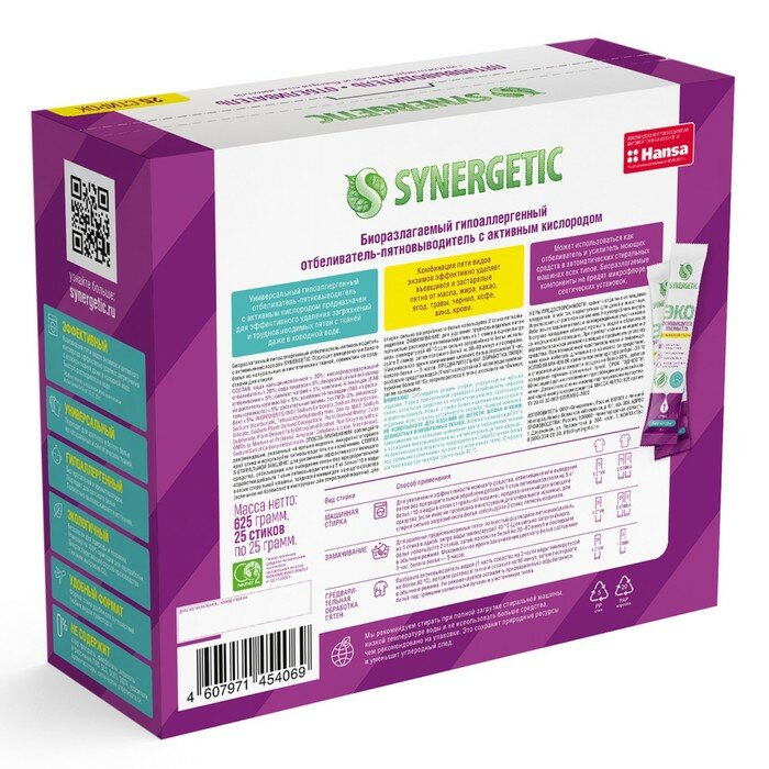 СохранитьПятновыводитель Synergetic с активным кислородом 25 г х 25 шт интересное: