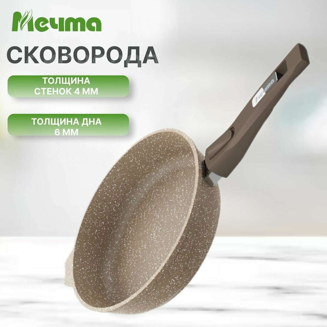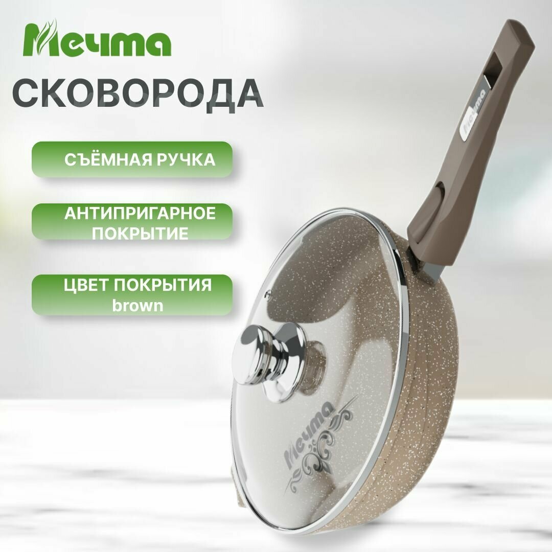 Мечта Сковорода «Гранит», d=26 см, съёмная ручка, стеклянная крышка, антипригарное покрытие, цвет коричневый