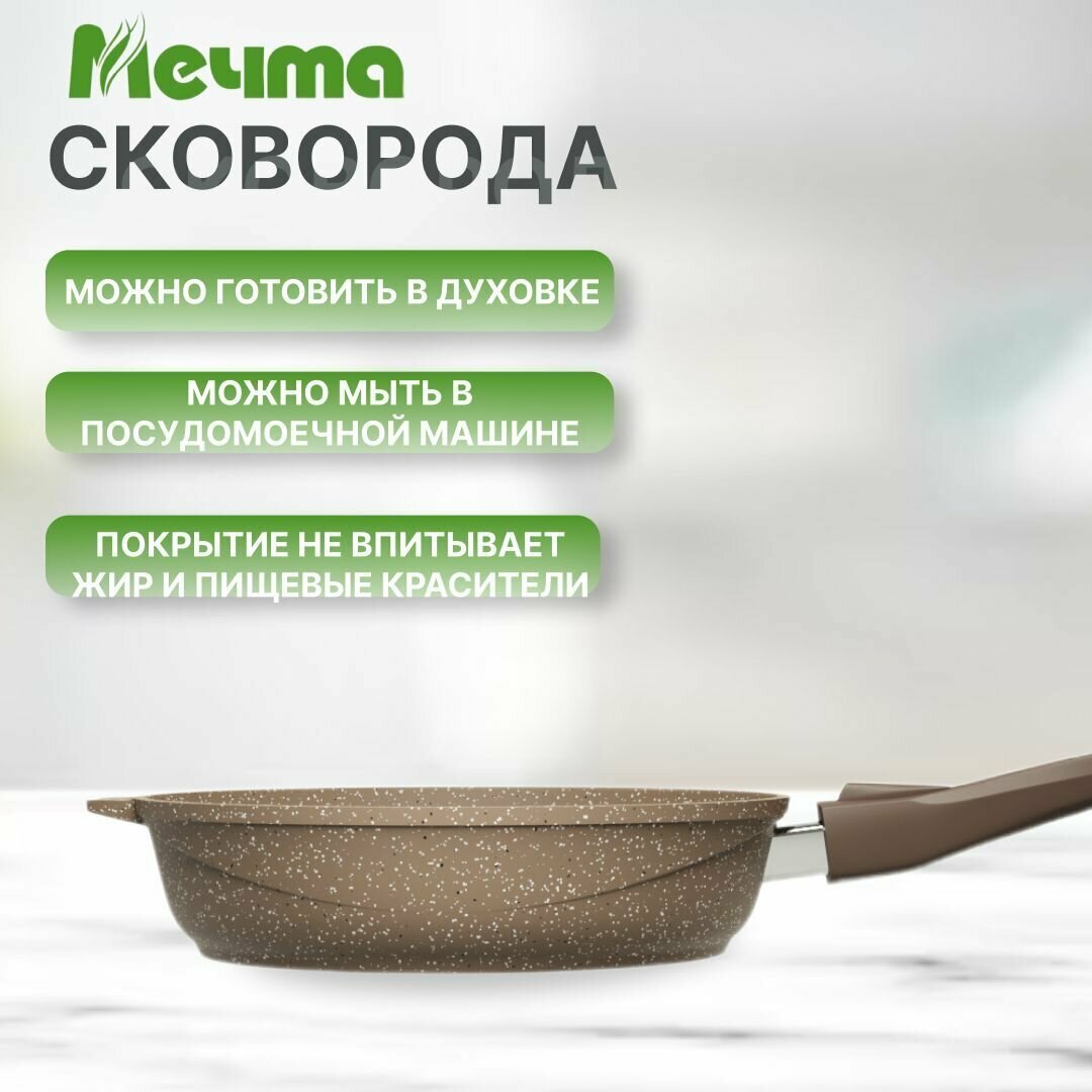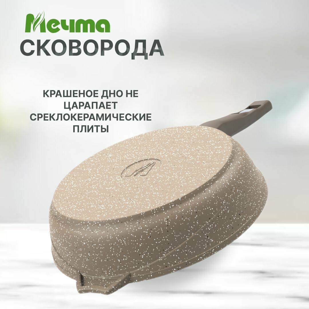 Купить Сковорода мечта 22см с ручкой, антипригарное покрытие, стеклянная крышка, Гранит, brown