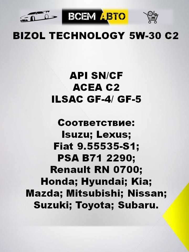СохранитьBIZOL Масло Моторное 5W30 Bizol 1Л Нс-Синтетика Technology C2 Api Sn/Cf (Азия) интересное: