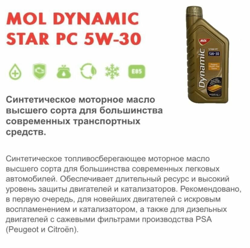 MOL Масло моторное MOL Dynamic Star PC 5W-30 1 л 13301157 1шт