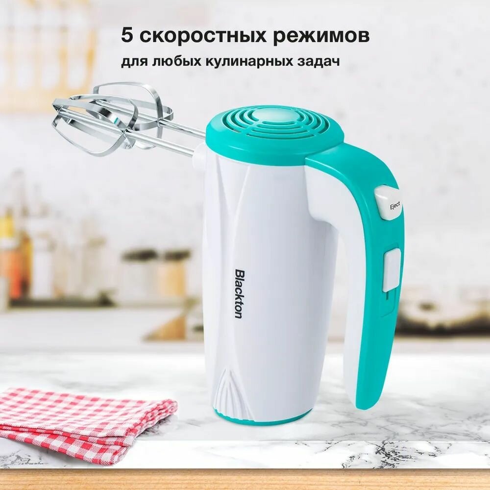Ручной миксер BLACKTONBt MX320 300 Вт, белый/бирюзовый