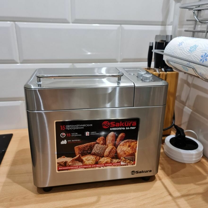 Хлебопечка SAKURA SA-7507 с 15 программами (в т.ч. джем, йогурт и тесто), вес выпечки 0.5-1 кг, LCD дисплей интересное: