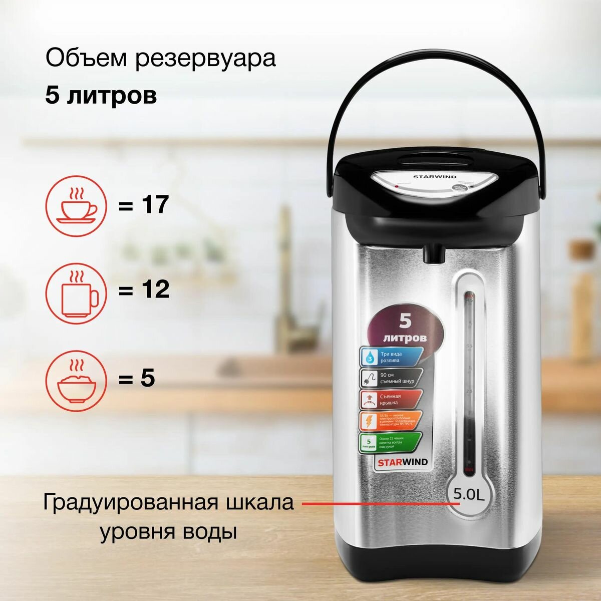 Термопот Starwind STP2851, 5 л, 750 Вт