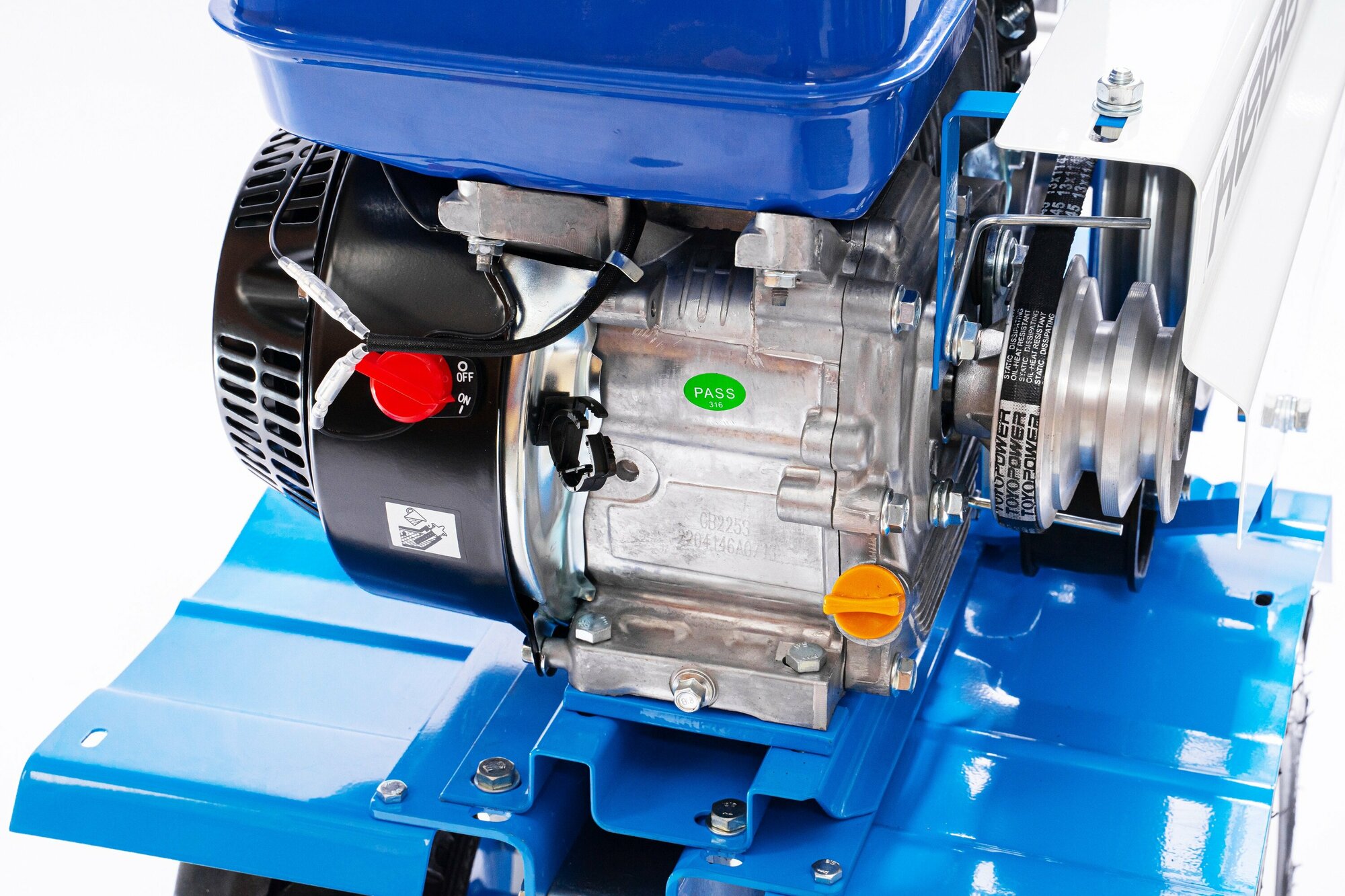 Достаточно мощный. Распахал 3 сотки с состояния целины до посадки картошки. Очень доволен. Переключение передач рычагом абсолютно не мешает. |