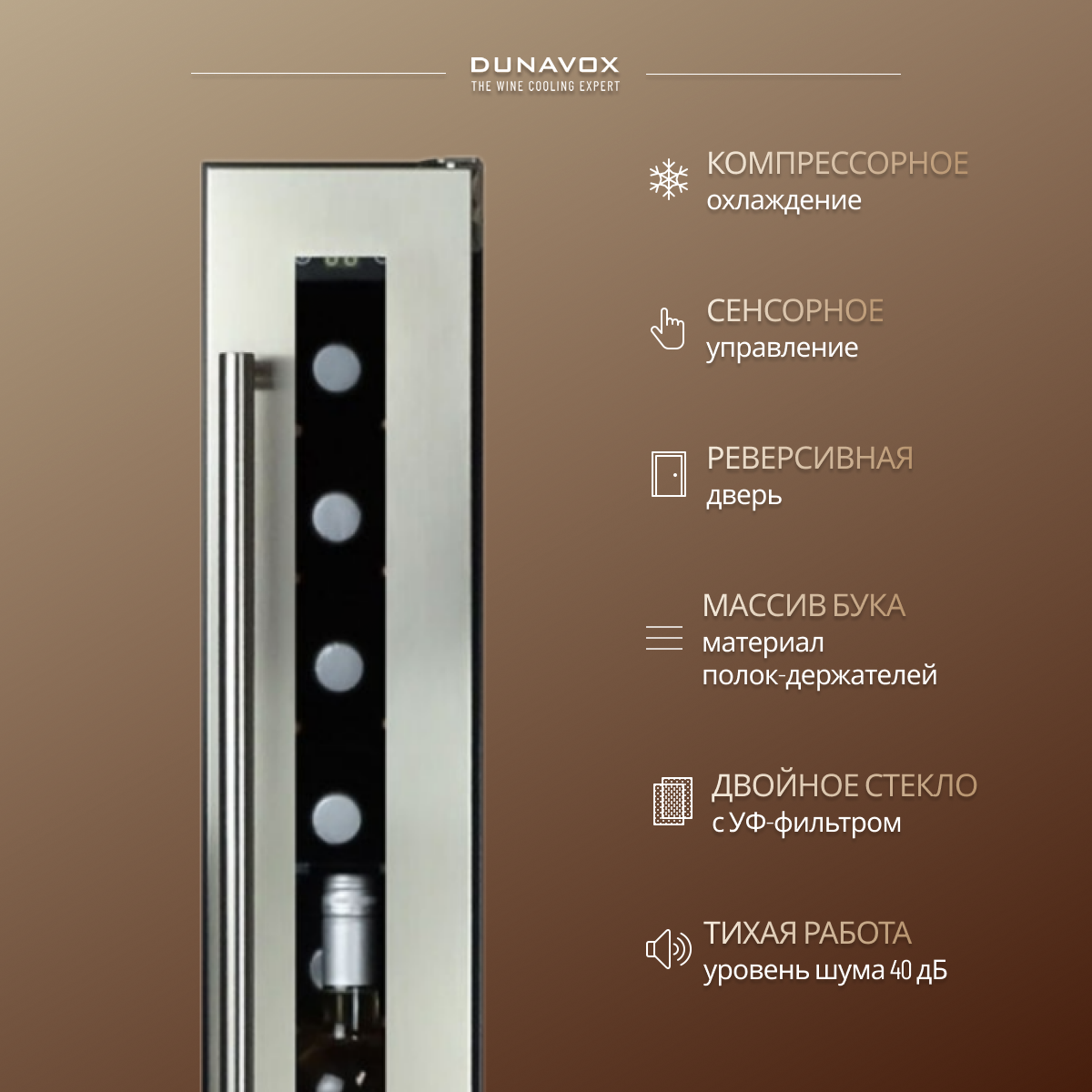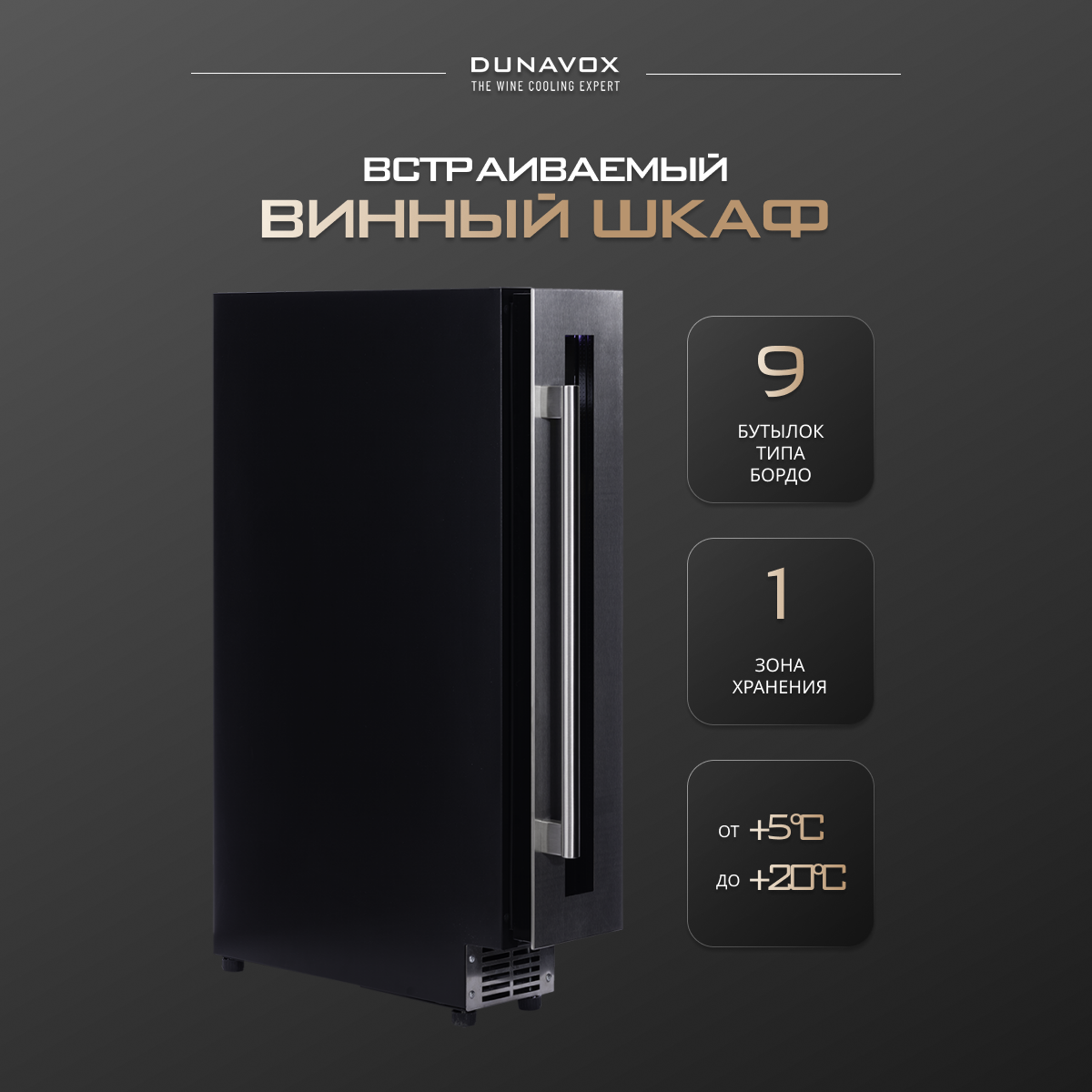 Встраиваемый винный шкаф Dunavox DAUF-9.22SS (компрессорный встраиваемый / отдельностоящий холодильник для вина на 9 бутылок) интересное: