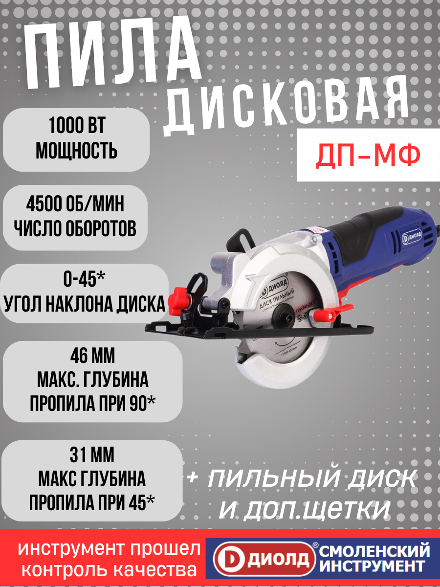 Дисковая пила Диолд ДП-1 МФ, 1000 Вт, 4500 об/мин