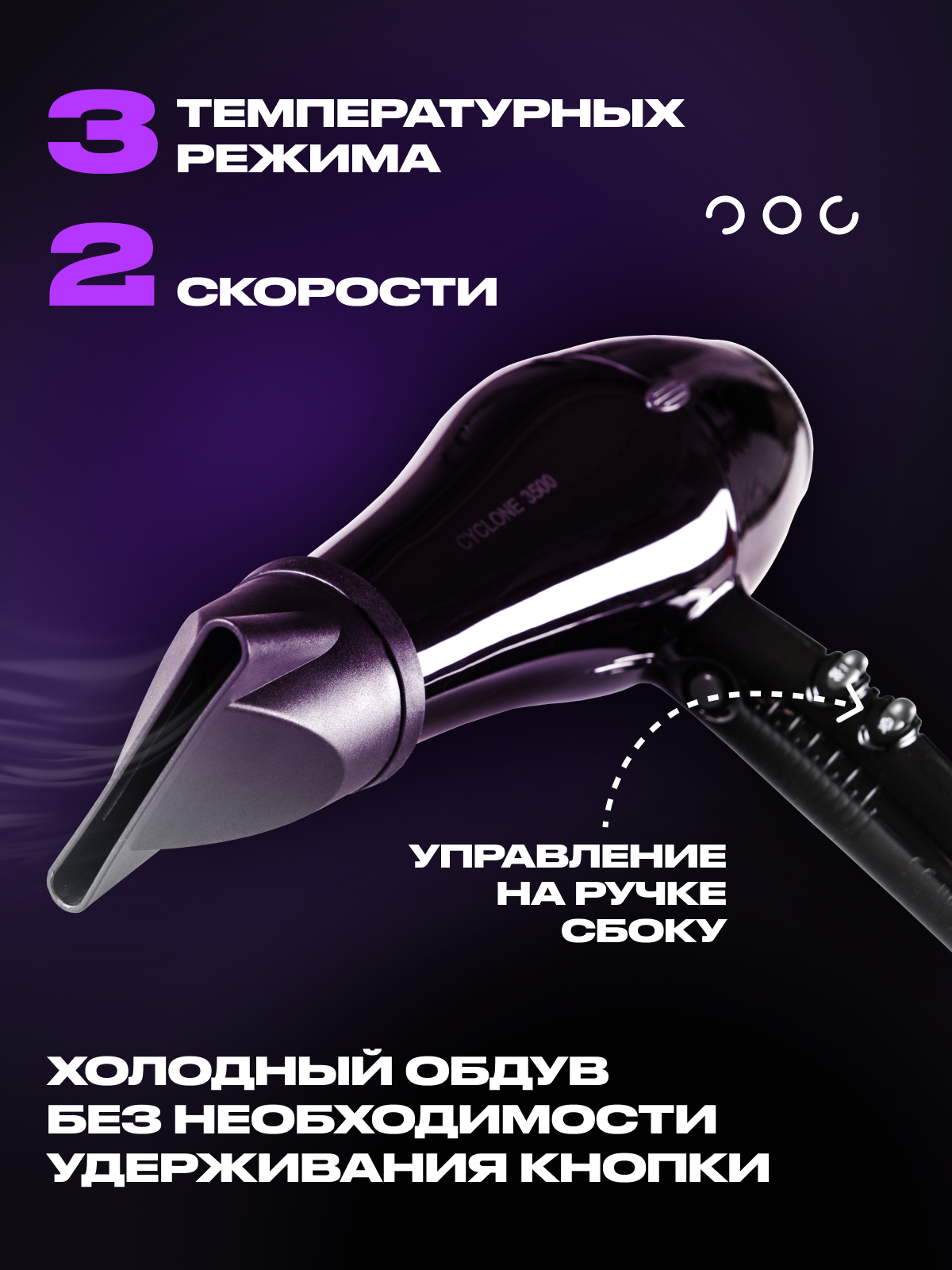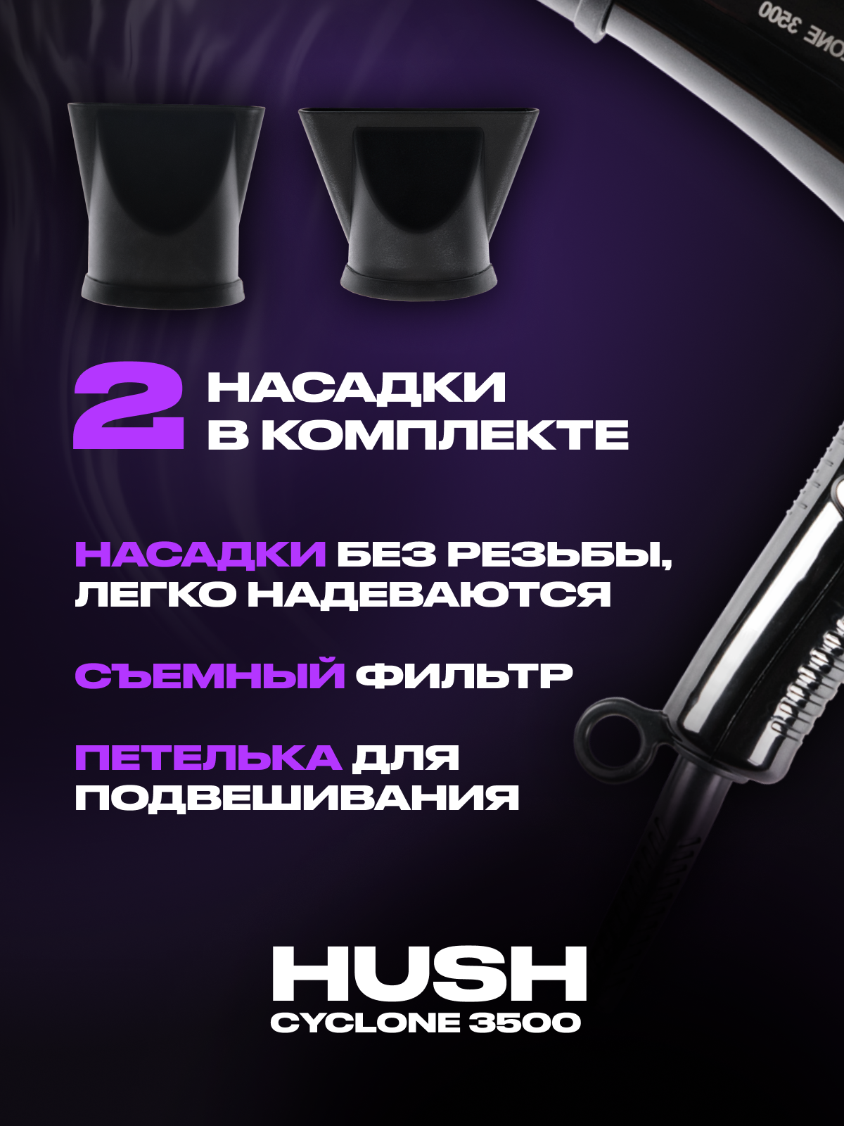 HUSH Профессиональный фен Cyclone 3500 интересное: