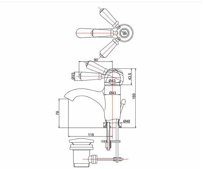 Смеситель для раковины Burlington Chelsea CH22 BLA хром/ручка черная