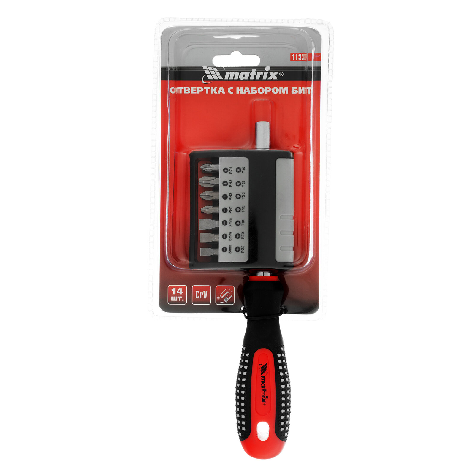 Отвертка с набором бит Matrix 11337 CrV, 14 шт.