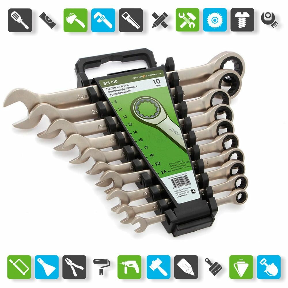 Набор ключей комбинированных трещоточных (8,10,12,13,14,15,17,19,22,24 мм) 10шт дело техники 515100