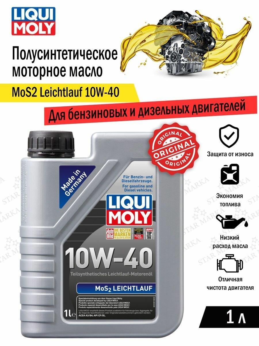 Моторное масло LIQUI MOLY MoS2 Leichtlauf 10W-40 полусинтетическое 1 л