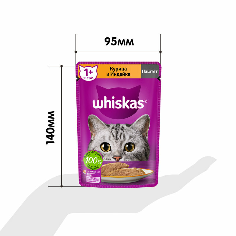 Whiskas Влажный корм для кошек, паштет с курицей и индейкой, 75г 1023350310244971, 0,075 кг