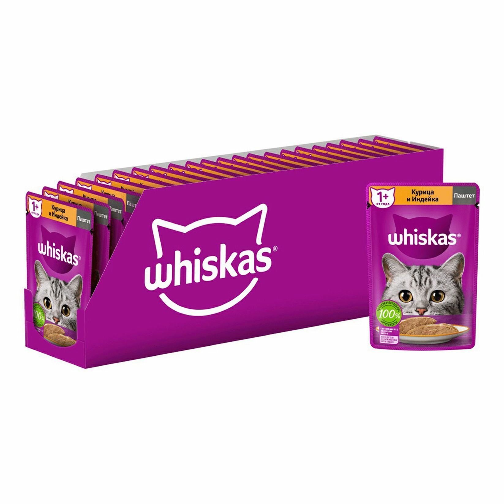 Whiskas влажный корм для взрослых кошек, паштет с курицей и индейкой, в паучах - 75 г х 24 шт