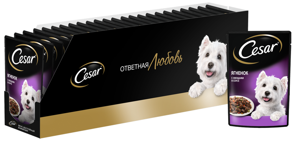 Cesar Паучи для взрослых собак, с ягненком и овощами в соусе, 85г 10222813, 0,085 кг (36 шт)