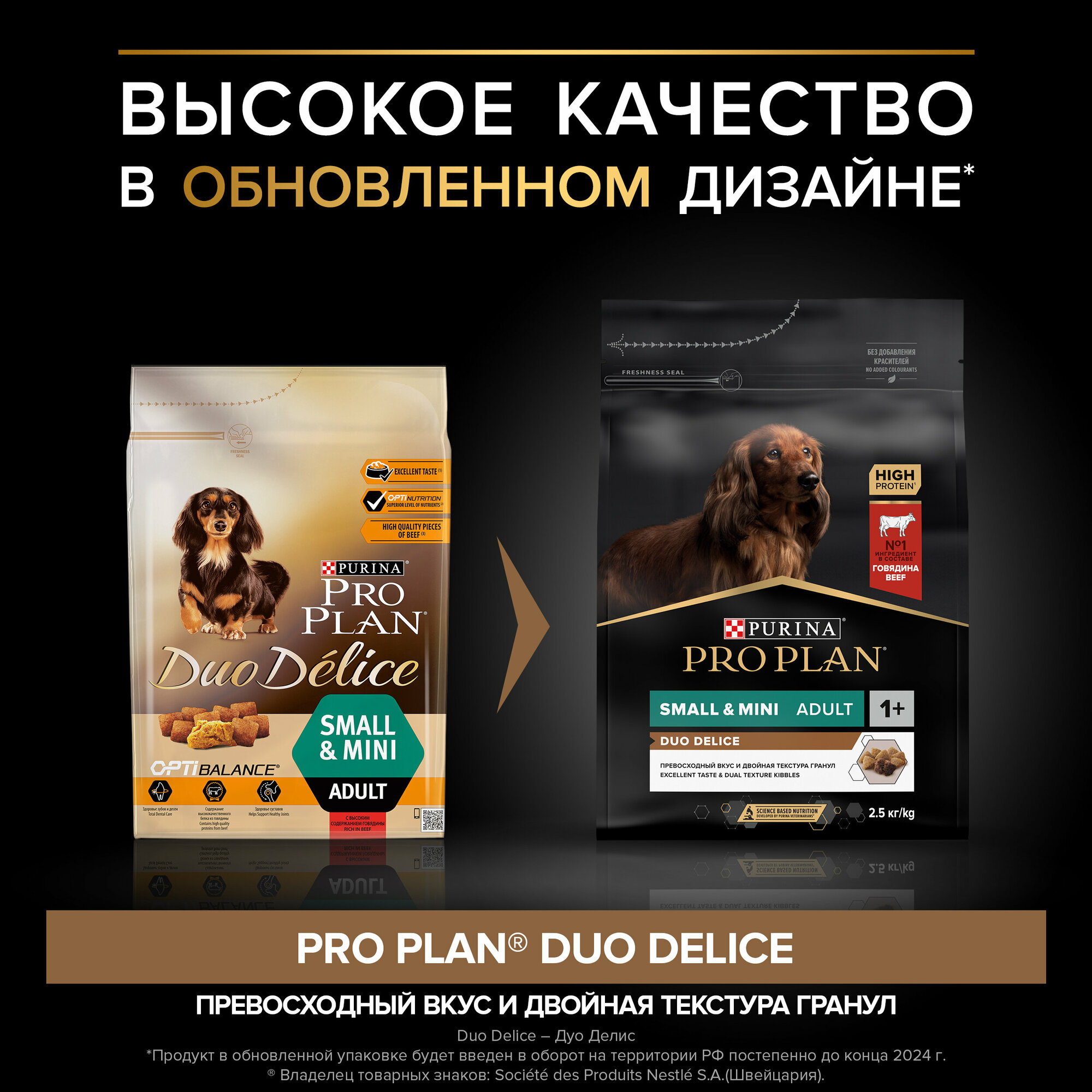 Сухой корм Pro Plan® Duo Delice для взрослых собак мелких и карликовых пород, с высоким содержанием говядины, Пакет, 2,5 кг
