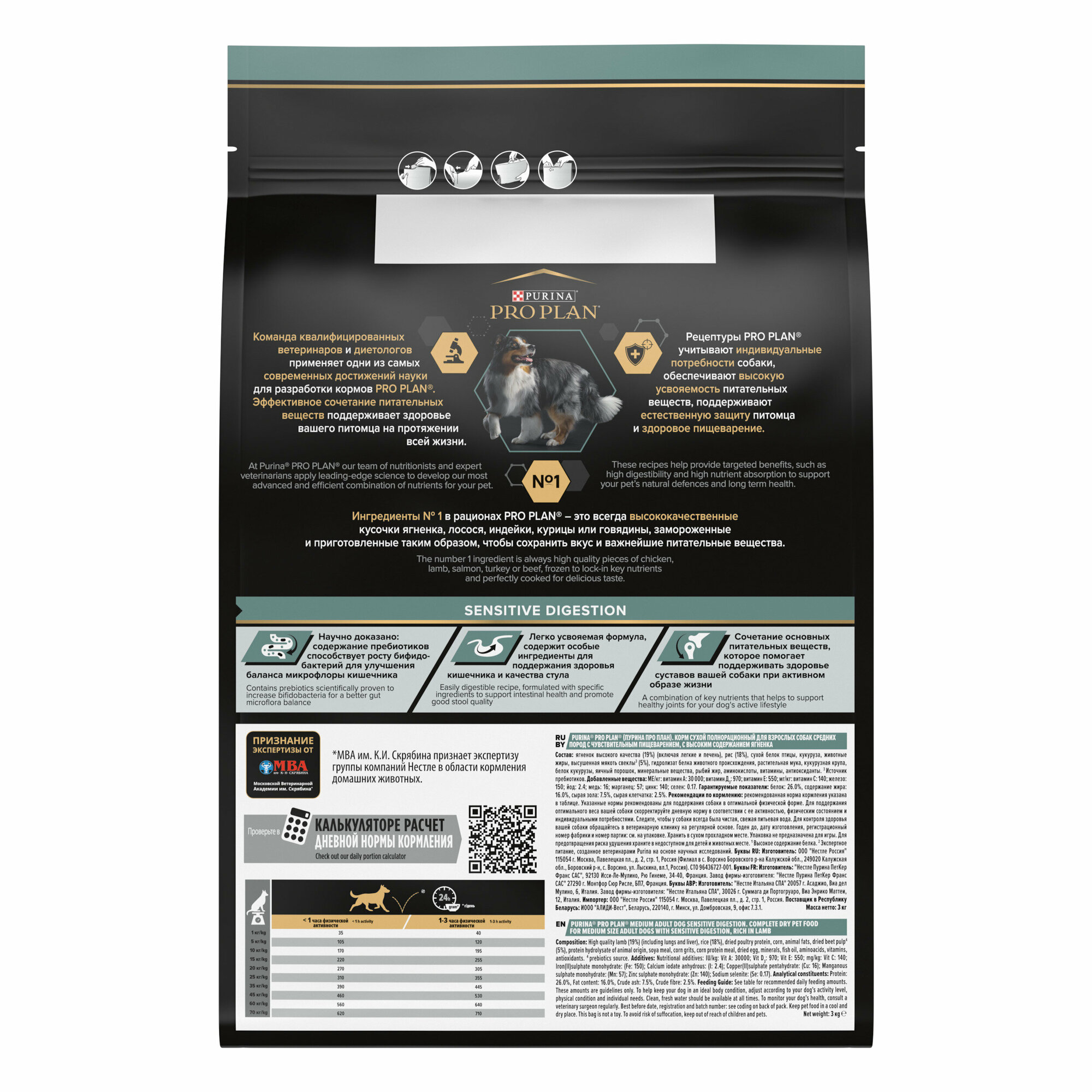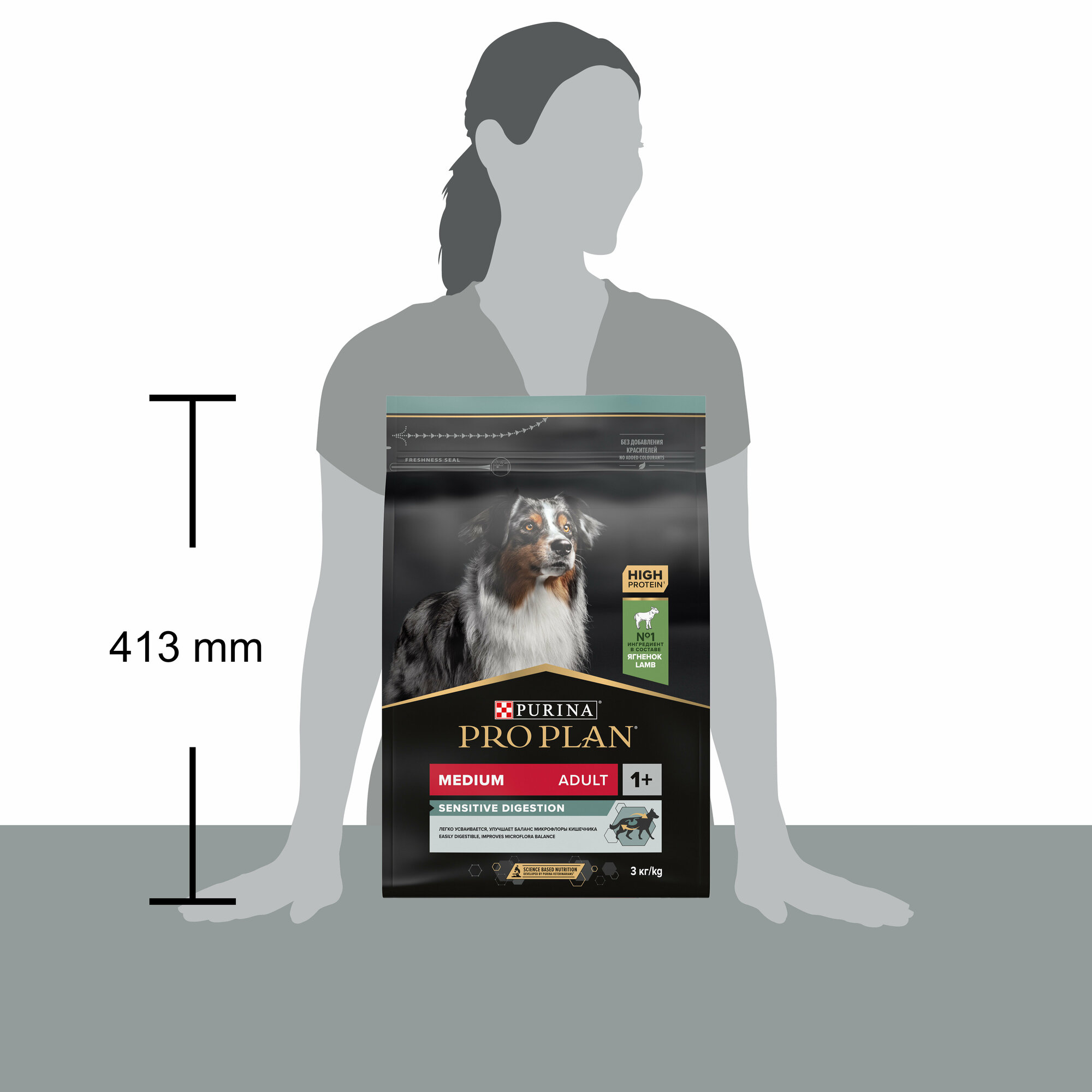 Сухой корм Pro Planдля взрослых собак средних пород с чувствительным пищеварением, с высоким содержанием ягненка, Пакет, 3 кг х 1 шт