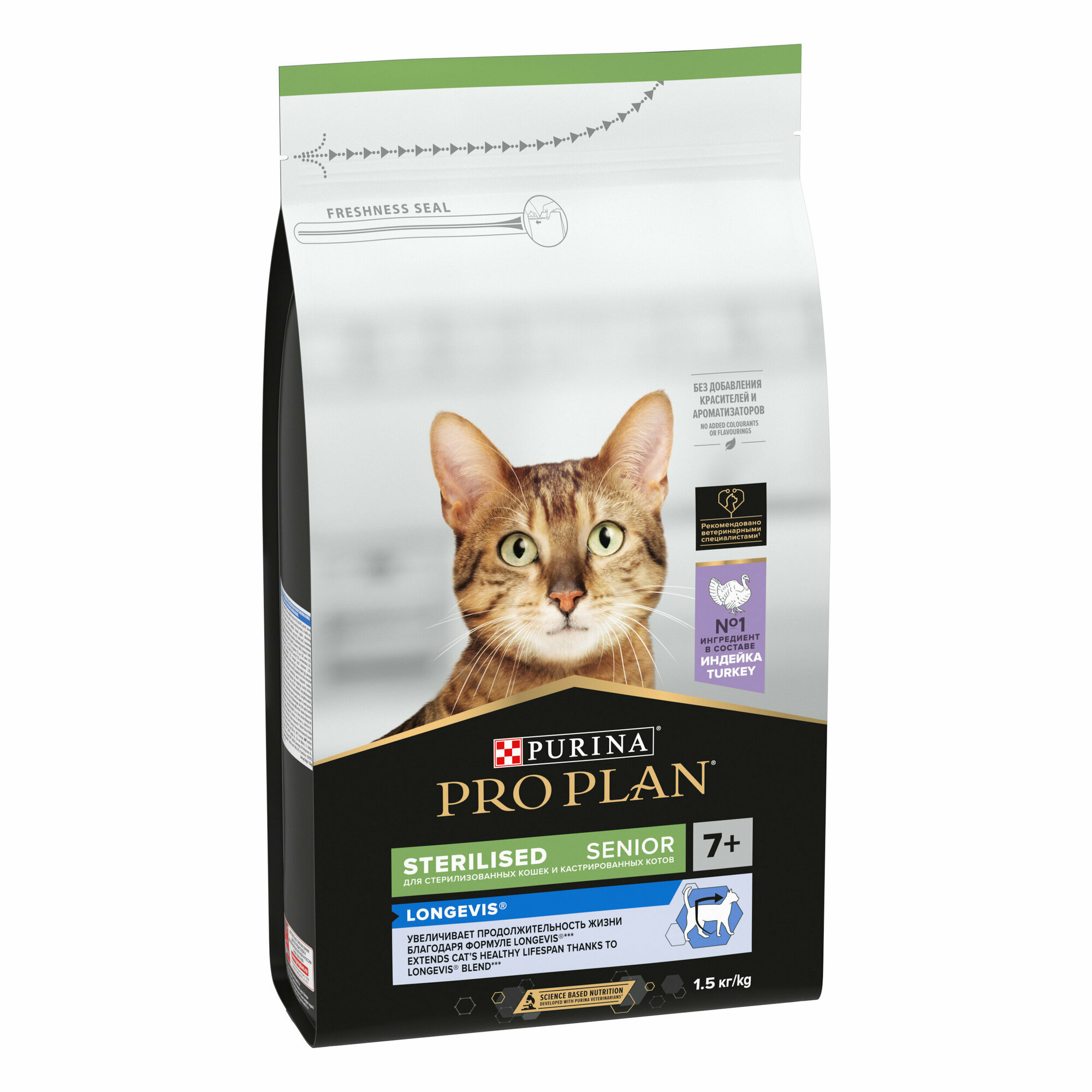 Сухой корм для стерилизованных пожилых кошек Pro Plan Sterilised Longevis 7+ , с индейкой 1,5 кг