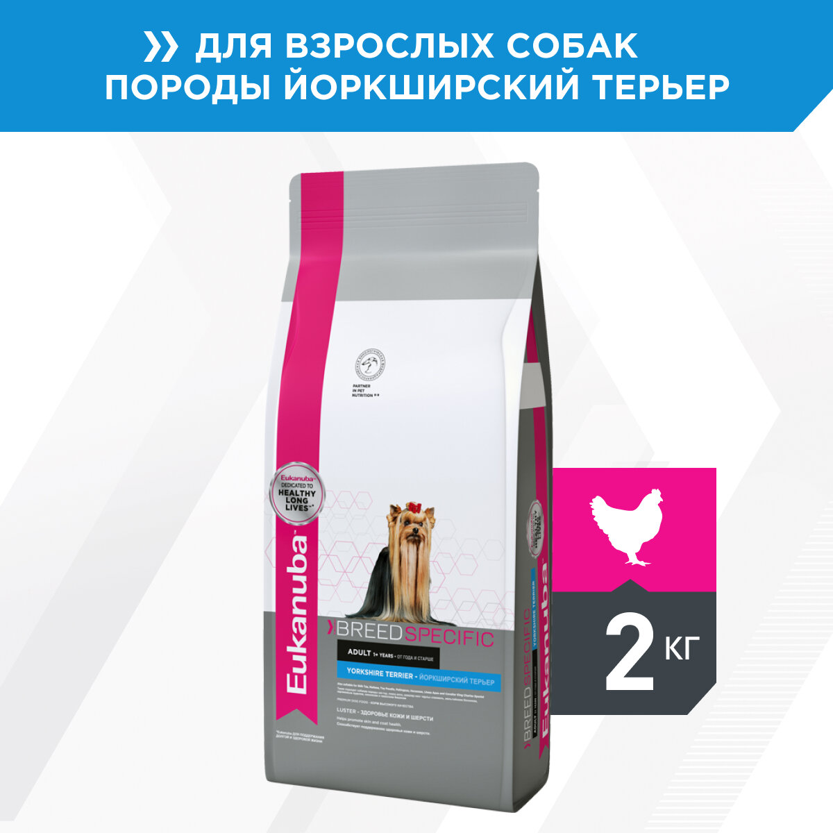 Сухой корм для собак Eukanuba Breed Specific Йоркширский терьер, курица 2 кг
