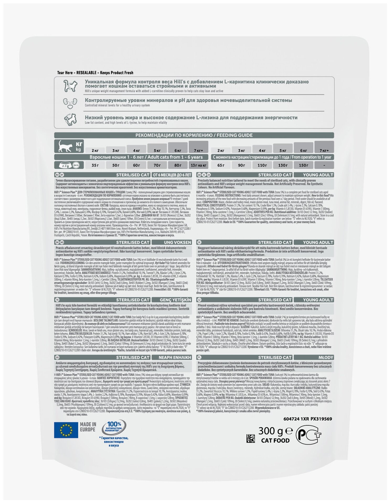 HILL’S SCIENCE PLAN YOUNG ADULT STERILISED CAT TUNA для взрослых кастрированных котов и стерилизованных кошек с тунцом (0,3 кг х 6 шт)