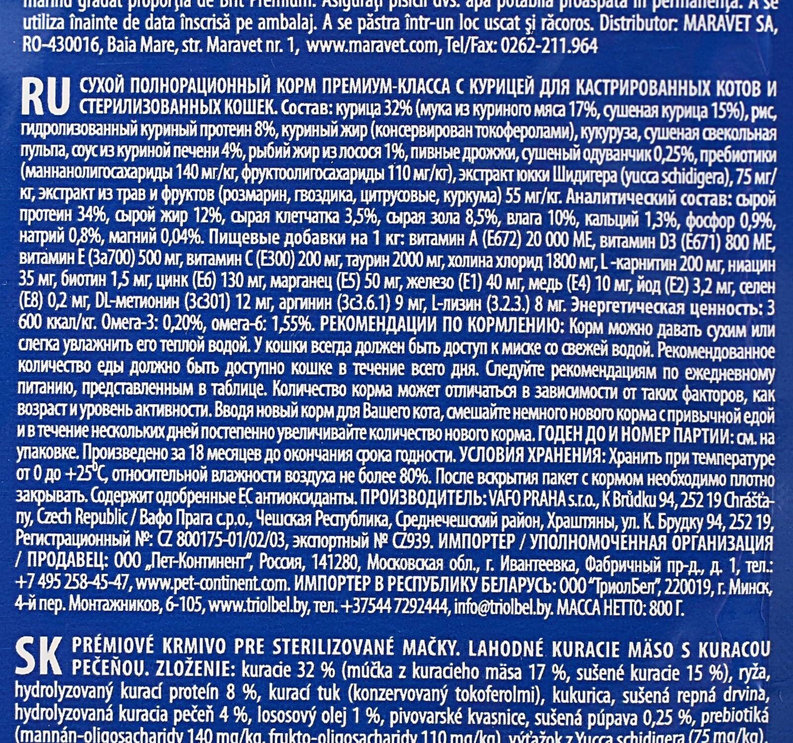 Ниже Вы можете прочитать отзывы на Корм сухой для взрослых кошек BRIT Premium Cat Sterilized с курицей, для кастрированных и стерилизованных, 800г, ознакомится с подробными характеристиками, посмотреть интересные обзоры и фотографии на Корм сухой для взрослых кошек BRIT Premium Cat Sterilized с курицей, для кастрированных и стерилизованных, 800г.