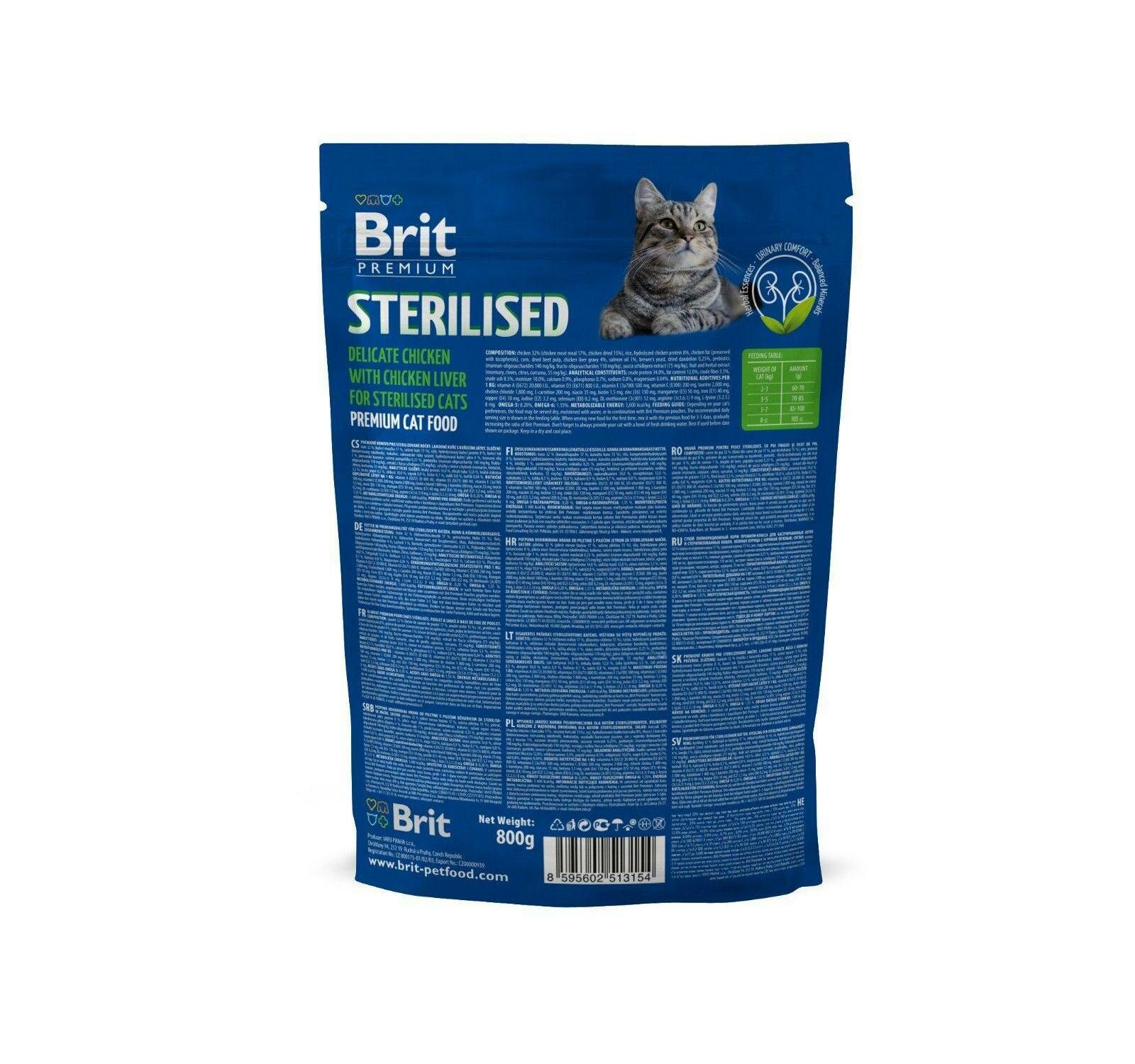 Корм Brit Premium Sterilised для стерилизованных кошек с курицей и печенью 800 г