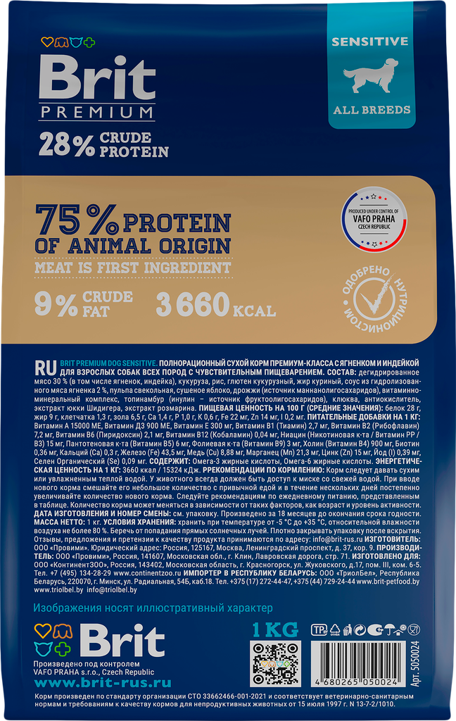 Brit Premium Dog Sensitive сухой корм для собак с чувствительным пищеварением Ягненок, 3 кг.