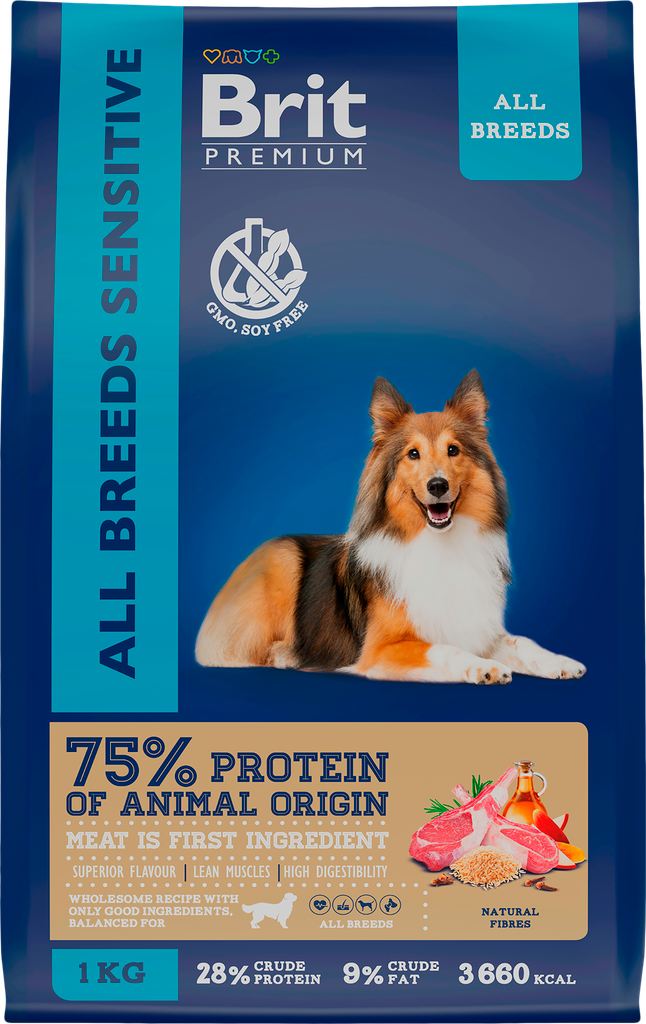 Купить Сухой корм Brit Premium с ягненком-рисом для собак с чувствительным пищеварением 1 кг