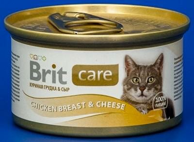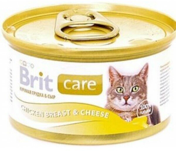 Корм для кошек BRIT Care Куриная грудка с сыром банка 80г (упаковка - 24 шт)