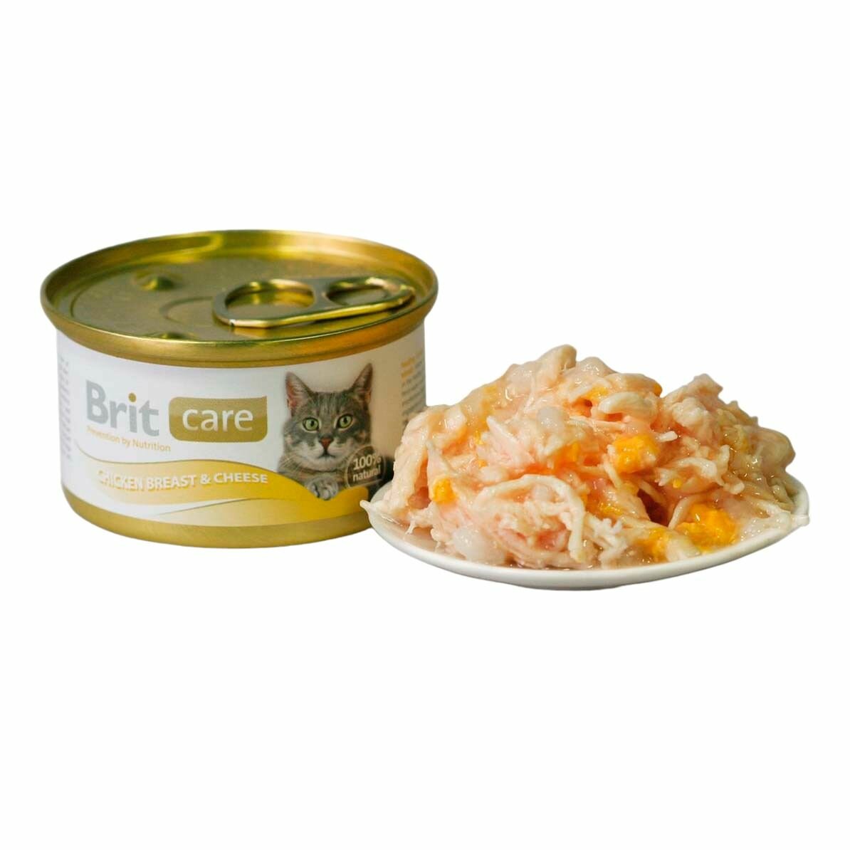 Консервы Brit Care Breast & Cheese для взрослых кошек с куриной грудкой и сыром,упаковка 12*80г