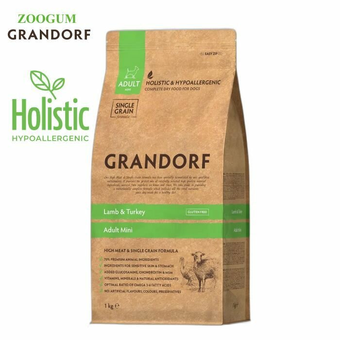 GRANDORF SINGLE GRAIN DOG ADULT MINI LAMB & TURKEY низкозерновой для взрослых собак маленьких пород с ягненком и индейкой (1 кг х 6 шт)