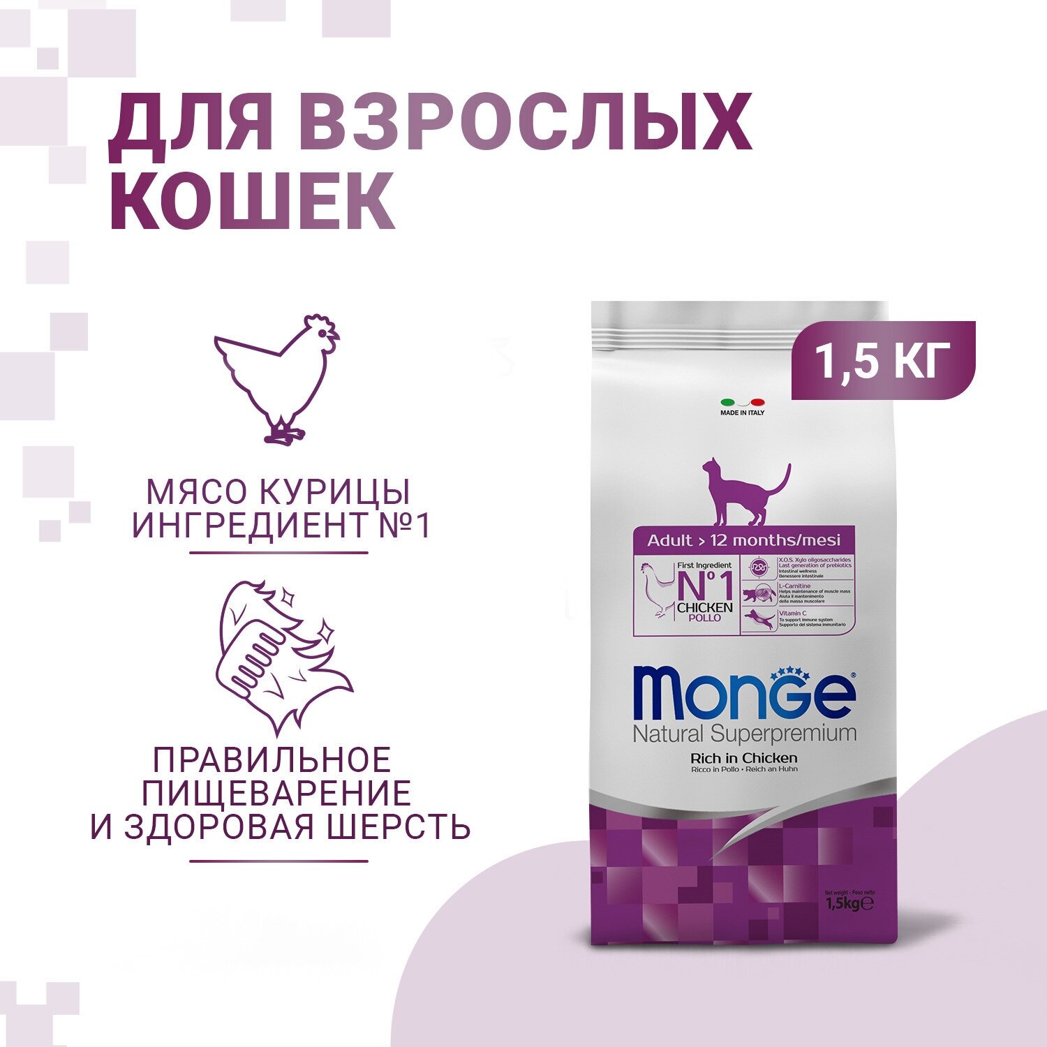 Сухой корм для кошек Monge Natural Superpremium, с курицей 1.5 кг