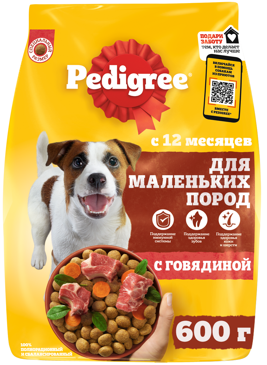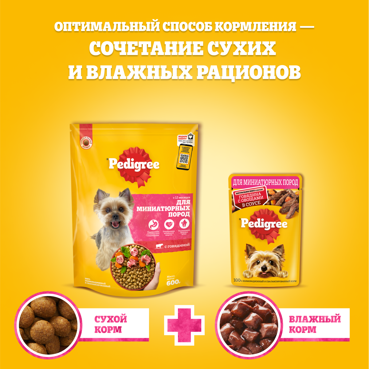 Корм сухой Pedigree для взрослых собак миниатюрных пород, с говядиной, 600 г