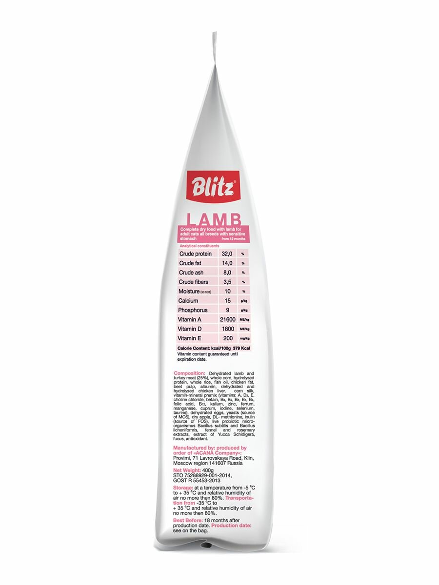 BLITZ сух. корм д/взрослых кошек Ягненок 400гр