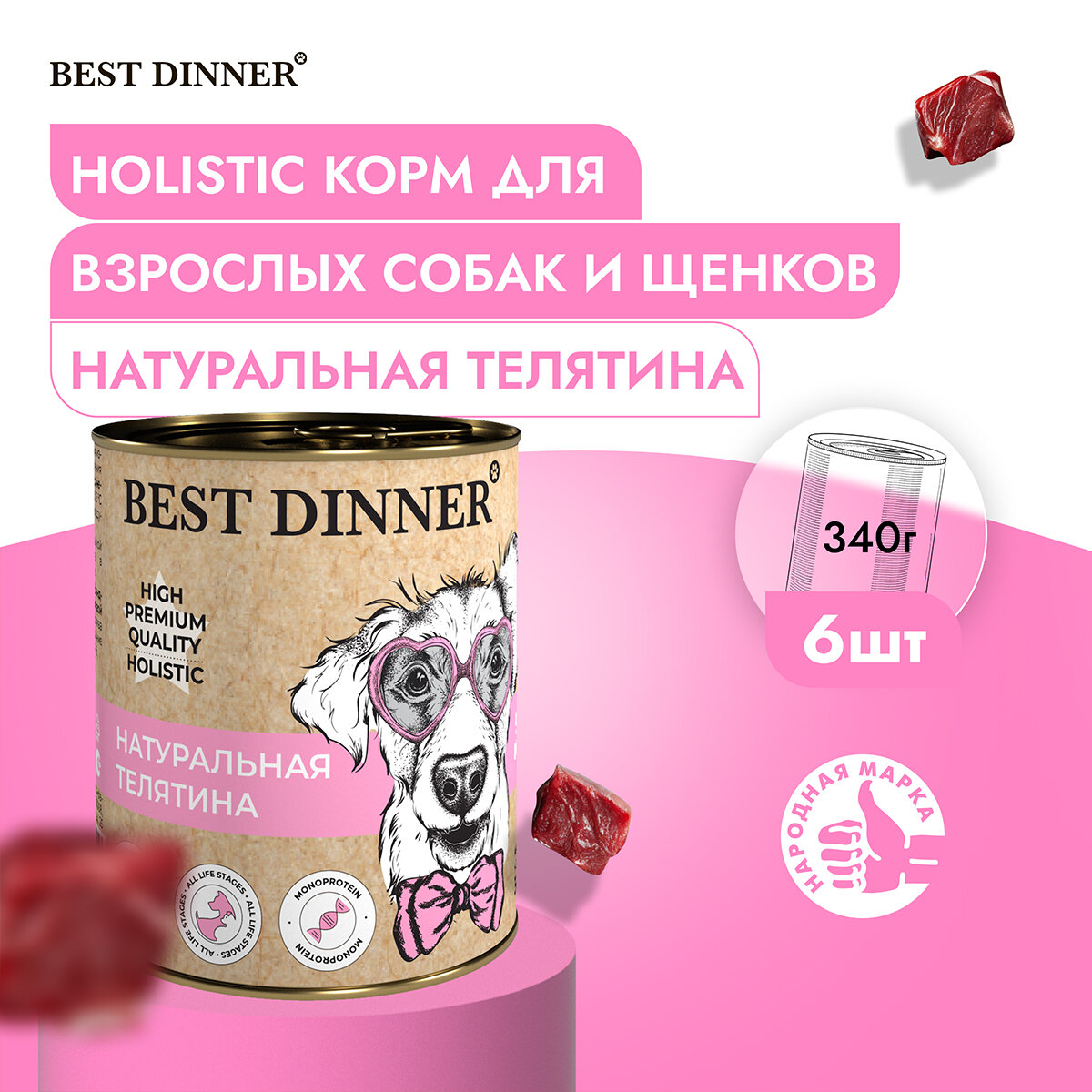 корм для собак Best Dinner телятина 1 уп. х 12 шт. х 340 г